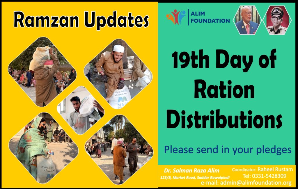 As the last Ashra of Ramzan is approaching and we are now on the 18th / 19th day of Ramzan, by the grace of Allah the Alim Foundation has successfully distributed ration packages to more than 3,100 deserving individuals and families so far.