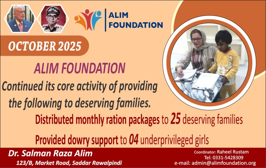During the month of October 2025, Alim Foundation continued its mission to support underprivileged families struggling with their daily needs.